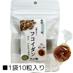 フコイダンのど飴 黒糖ミント味 ★お試しサイズ10粒入 600円(税込) 1粒あたり60円 |