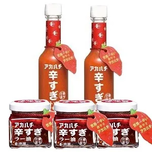 内容:アカハチホットソース3本+ラー油2本(1本あたり864円)
